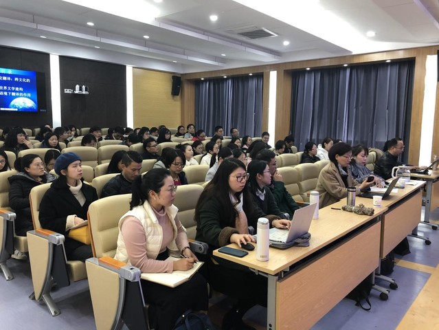 11月26日晚,上海交通大学人文社会科学资深教授、人文学院院长兼人文艺术研究院院长,清华大学学术委员会委员、外国语言文学系长江学者特聘教授、比较文学与文化研究中心主任王宁教授受邀做客同济外文讲坛,为大家做了主题为“翻译与跨文化阐释”的学术讲座。同济大学外国语学院院长吴贇教授主持了此次讲座,众多博士生、硕士生以及部分老师聆听了此次讲座。