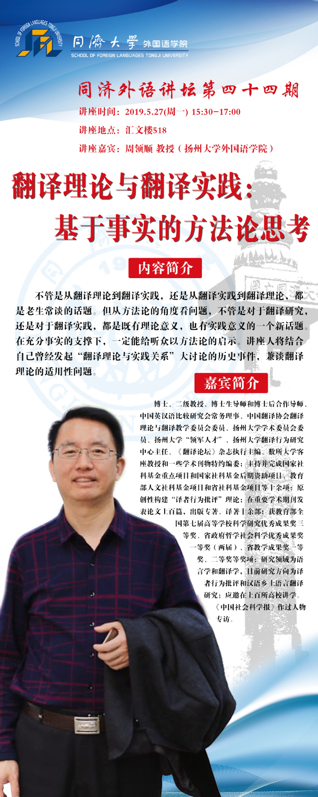下一篇:【同济外语讲坛第四十二期】“国家翻译实践”的名与实